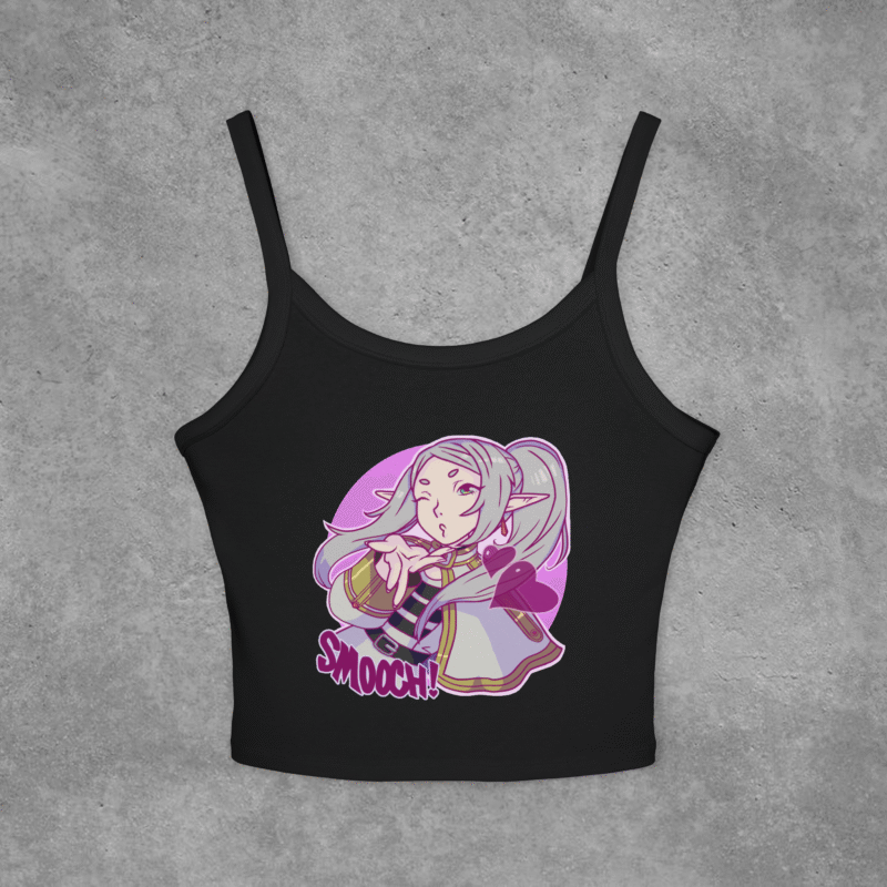 $23.65 – $27.53Price range: $23.65 through $27.53Anime Smooch Crop Tank Top — Cute Kawaii Frieren Design