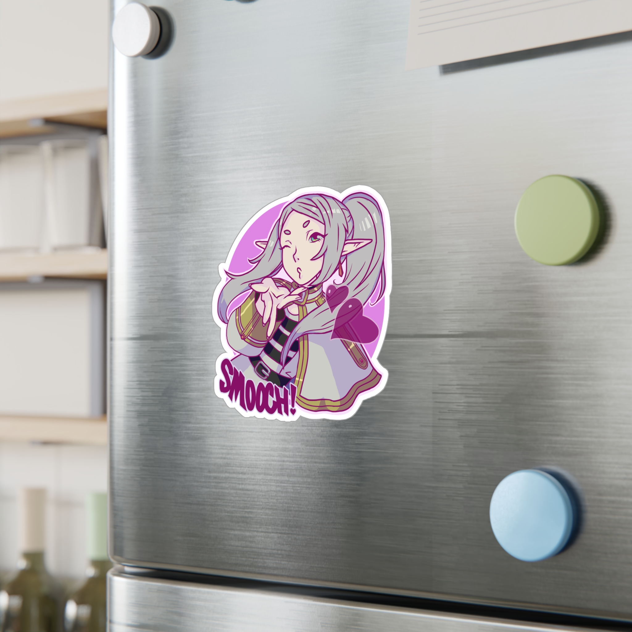 Anime Frieren ‘Smooch!’ Kiss-Cut Vinyl Sticker – Cute Kissing Pose Decal