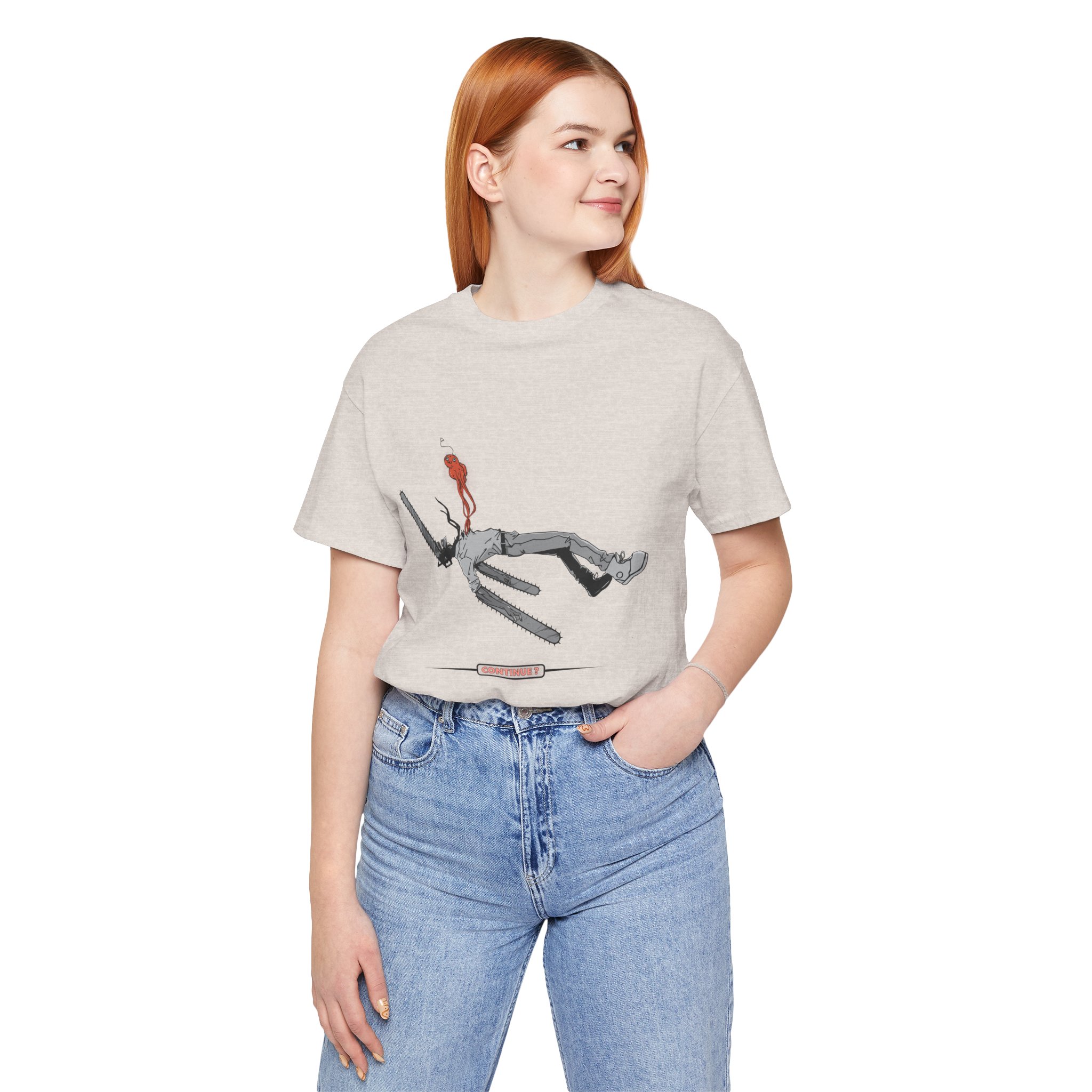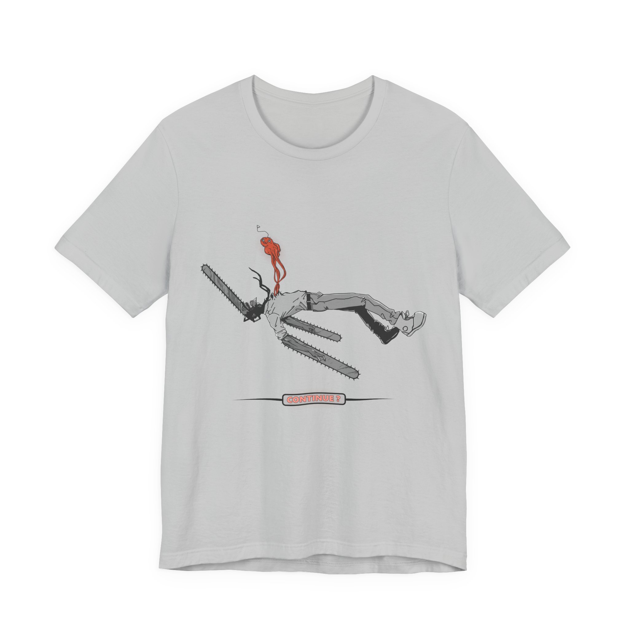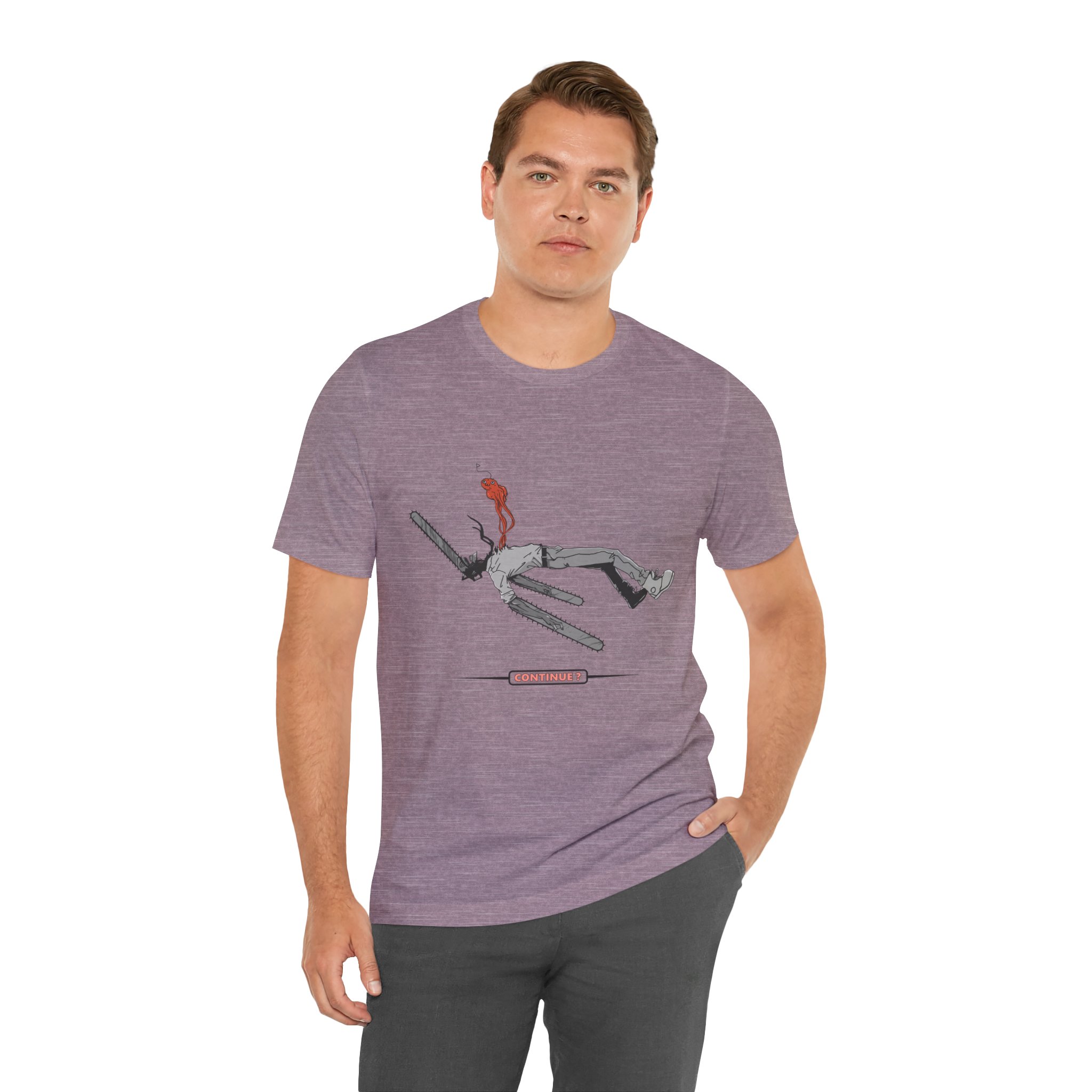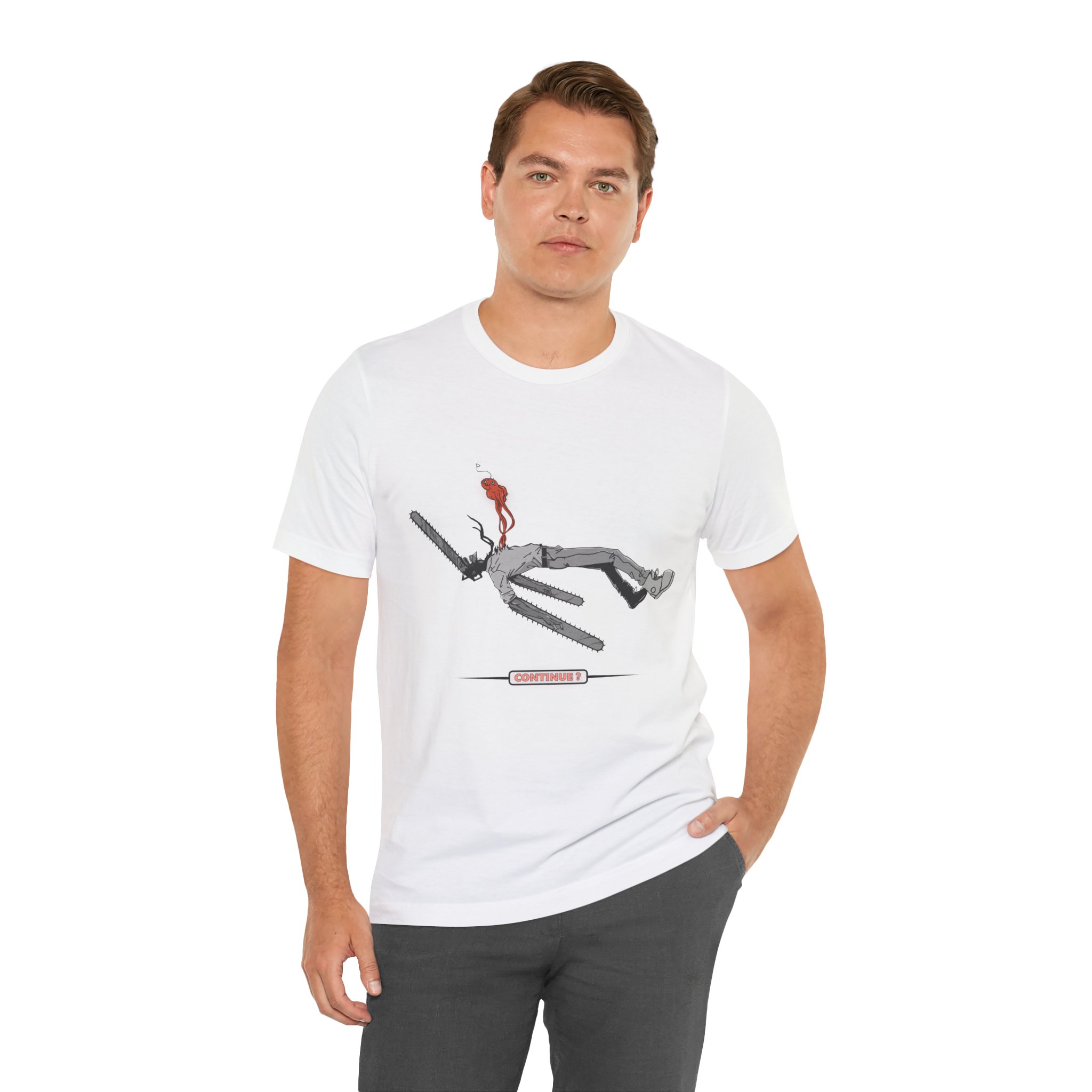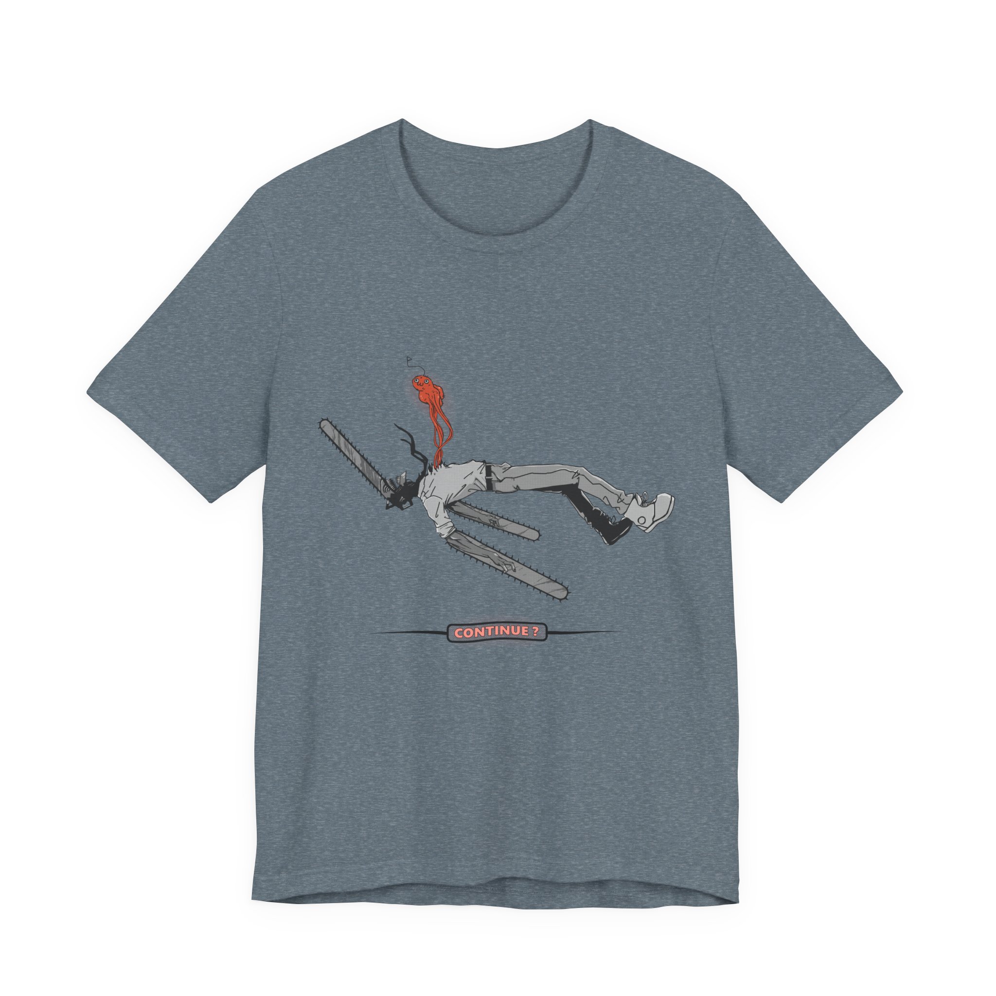 Lightweight, soft, and intentionally simple — this cotton tee carries a quiet, graphic story. Denji floats with his Chainsaw heart exposed, a parody of the ‘game over’ screen from Kingdom Hearts. The design sits slightly above center, leaving room to layer or accessorize while keeping the artwork as the focal point. Breathable Airlume combed cotton keeps the shirt airy through long days, and the retail crew neckline gives a clean, everyday silhouette. Wear it to slice through noisy crowds or to settle into a rough-edged playlist — it moves with you, not against you.